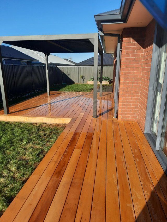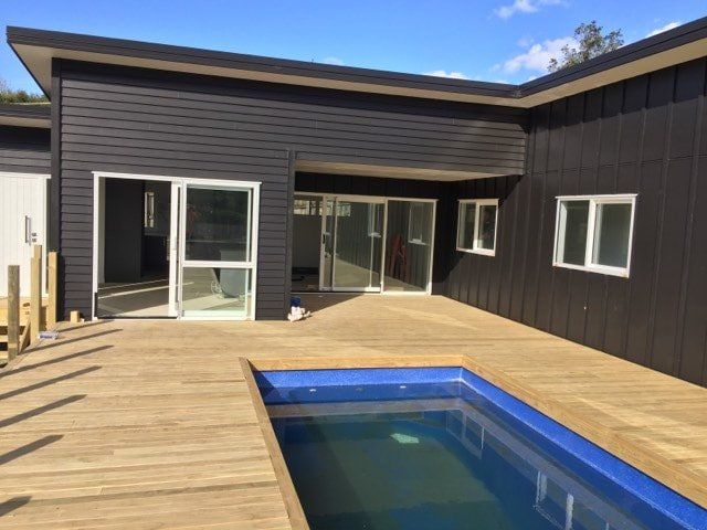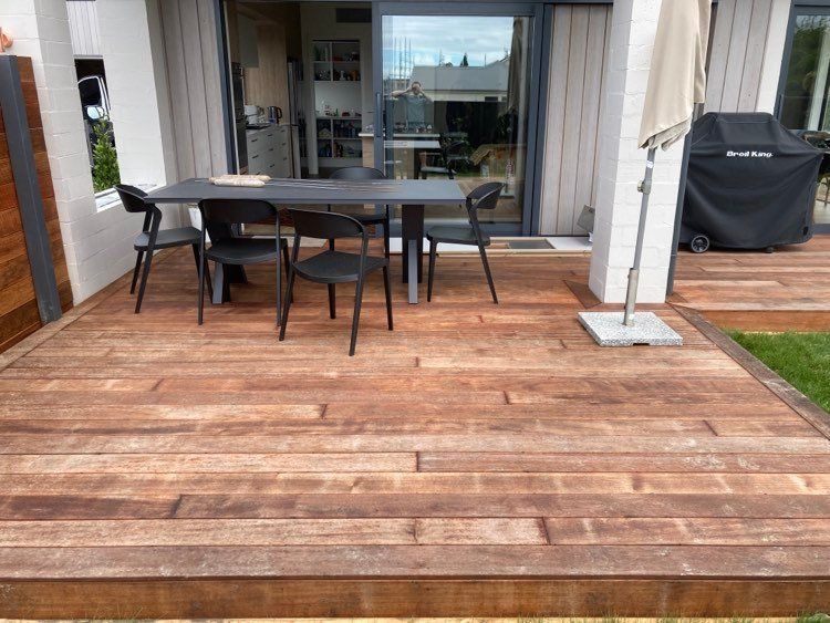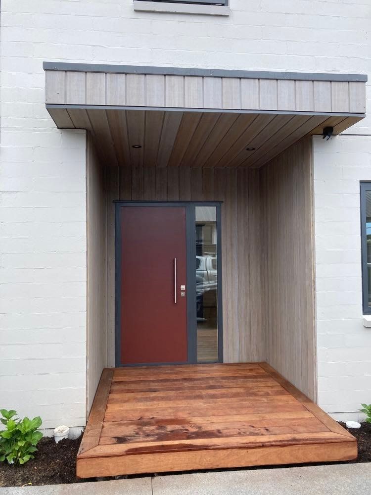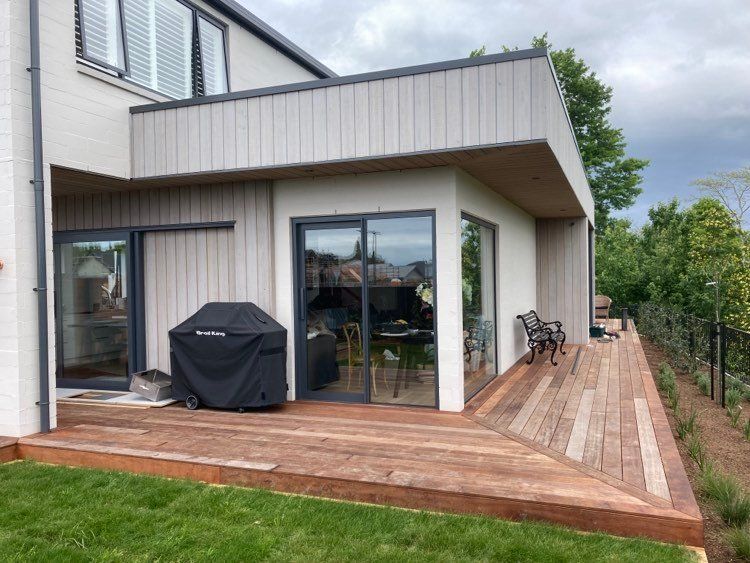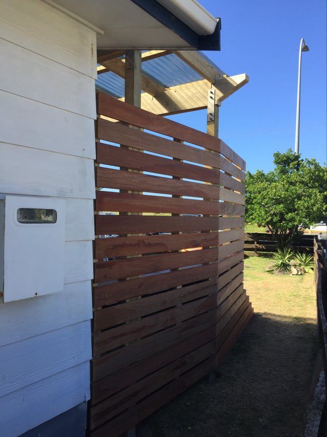 After pictures of Jason's job - Kwila deck with bench seats, privacy screen and covered pergola, also changed window to ranch slider
