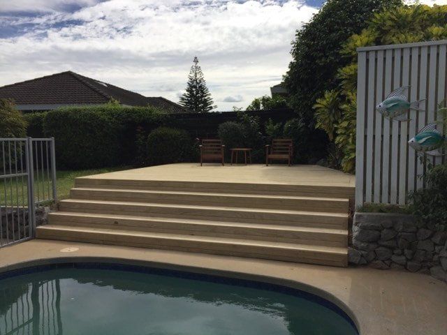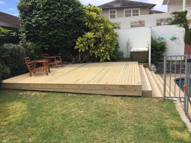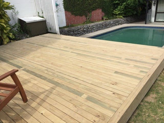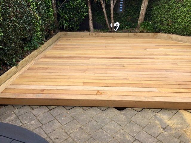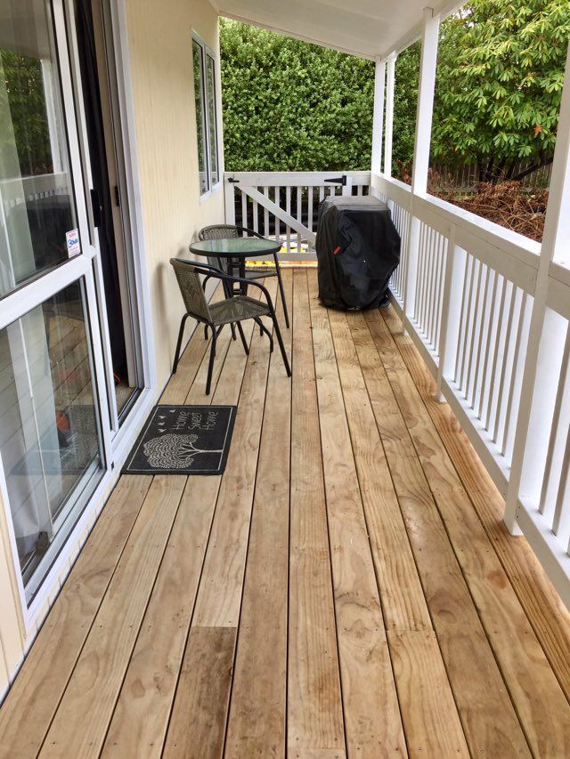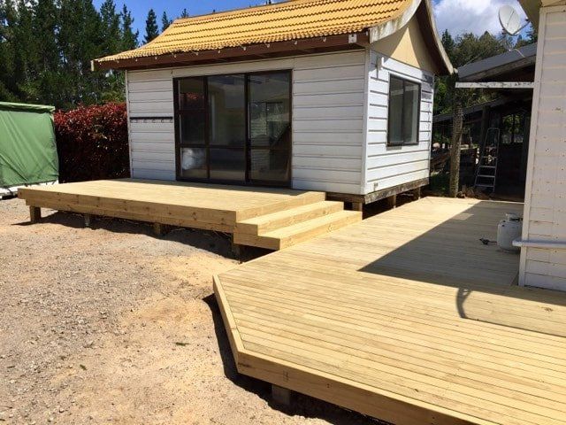 Pine deck for Paul & Theresa (relocatable building now in place)